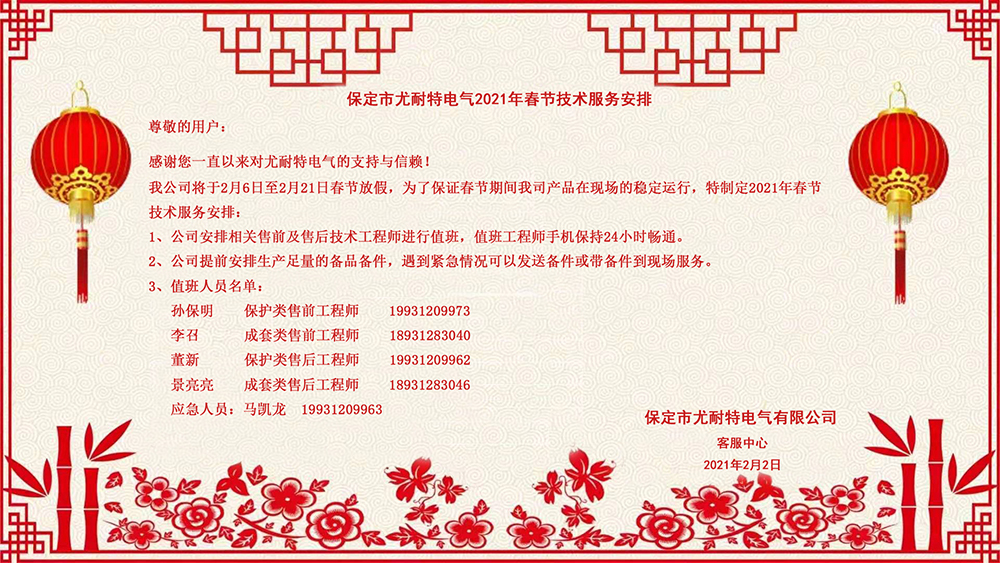 2021年春节技术服务安排